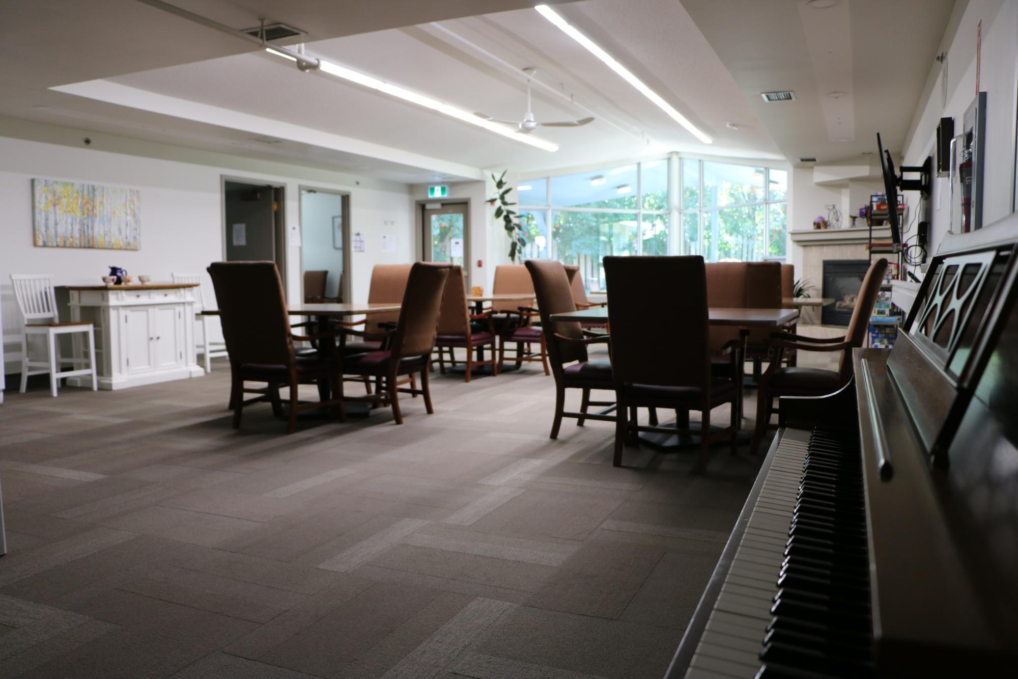 - Full dining room with a piano